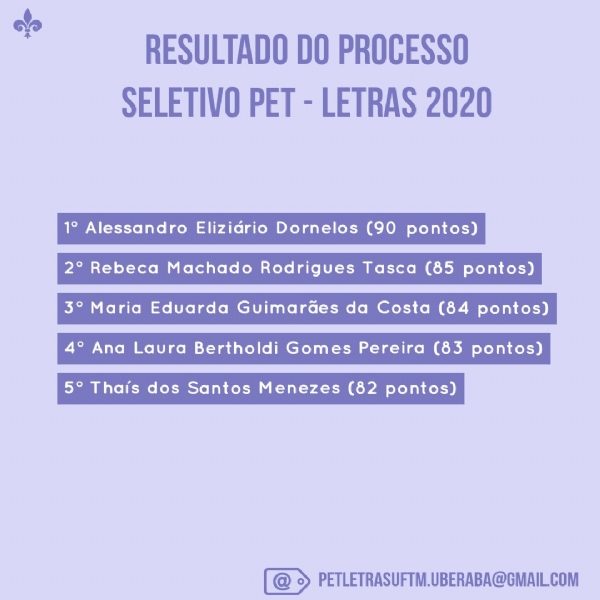 Resultado do edital de ingresso no PET-LETRAS 10/2020